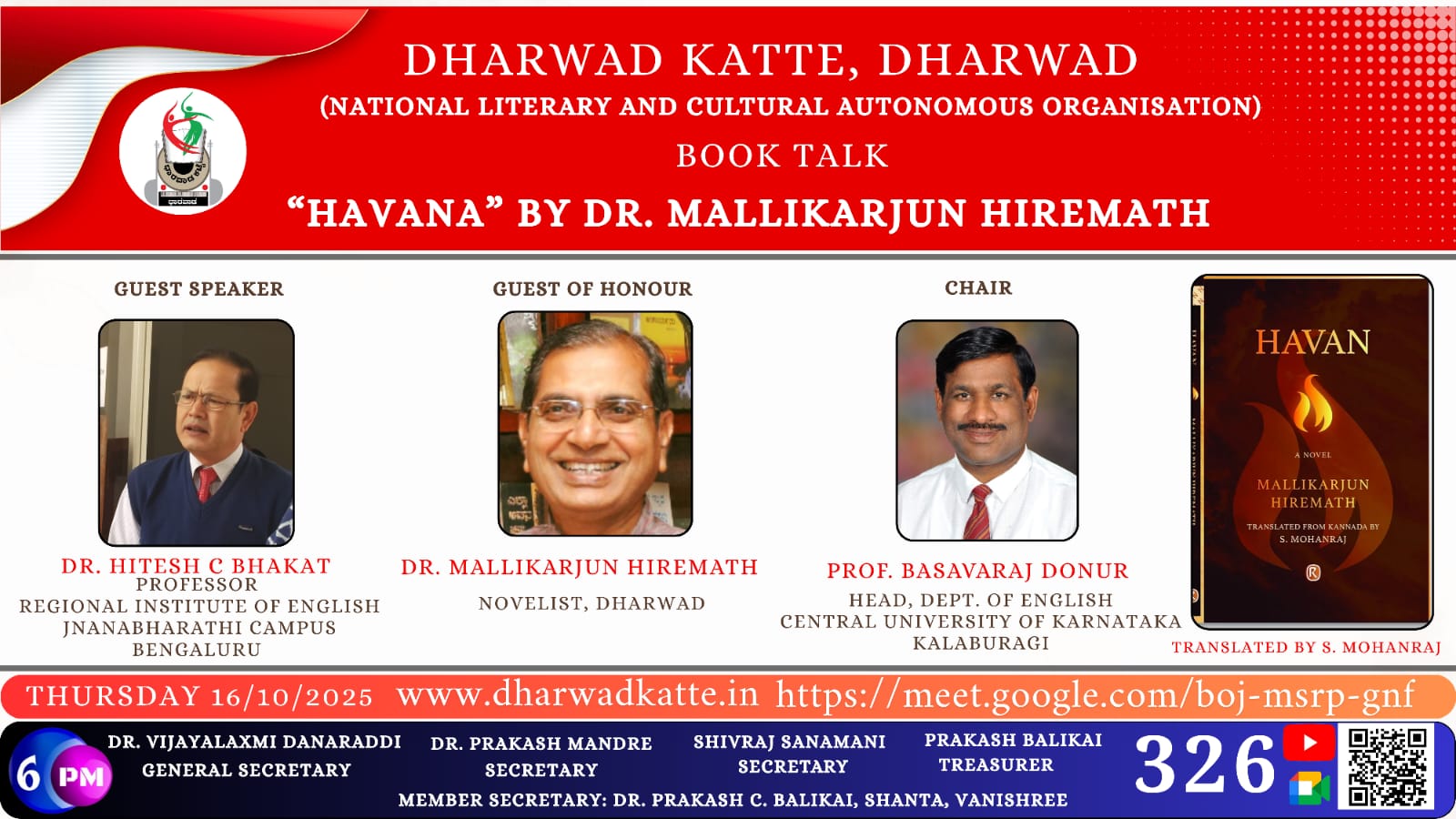 ಡಾ. ಮಲ್ಲಿಕಾರ್ಜುನ ಹಿರೇಮಠ ಅವರ ಇಂಗ್ಲಿಷ್ ಅನುವಾದಿತ ‘ ಹವನ’ ಕಾದಂಬರಿಯ ಕುರಿತ ಸಂವಾದ ಕಾರ್ಯಕ್ರಮ