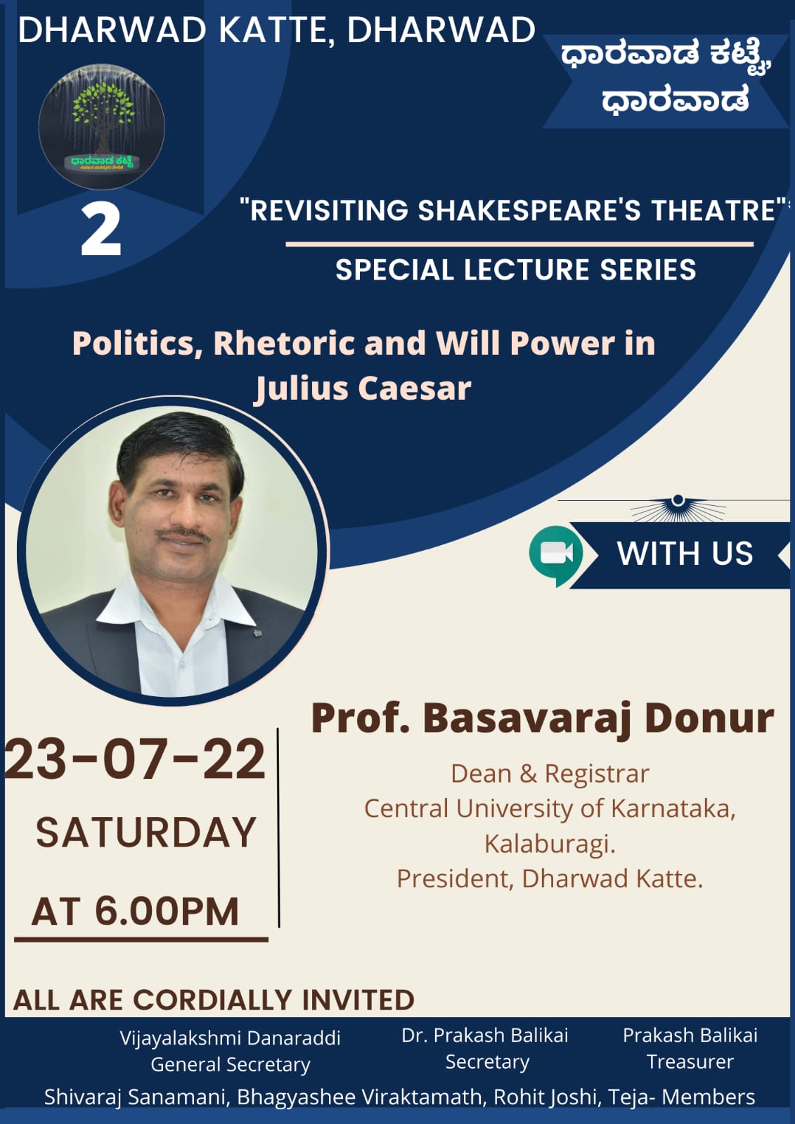 “Politics, Rhetoric and Will Power in Julius Caesar”|| Prof. Basavaraj Donur
