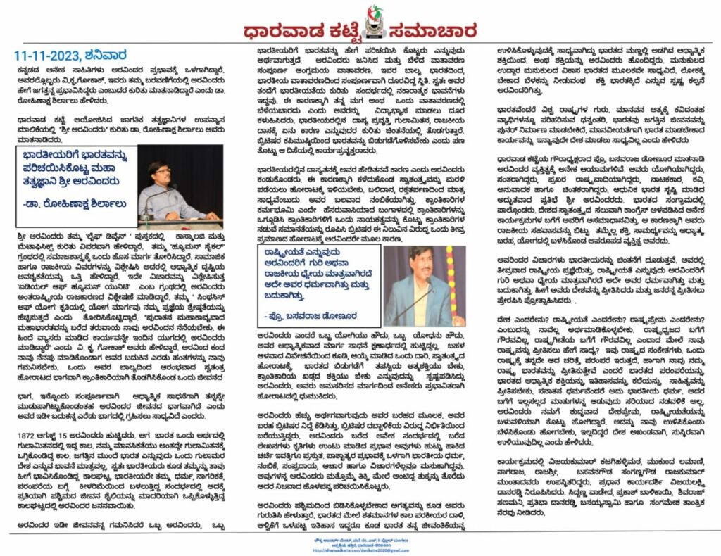 - ಭಾರತೀಯರಿಗೆ ಭಾರತವನ್ನು ಪರಿಚಯಿಸಿಕೊಟ್ಟ ಮಹಾ ತತ್ವಜ್ಞಾನಿ ಶ್ರೀ ಅರವಿಂದರು -ಡಾ. ರೋಹಿಣಾಕ್ಷ ಶಿರ್ಲಾಲು